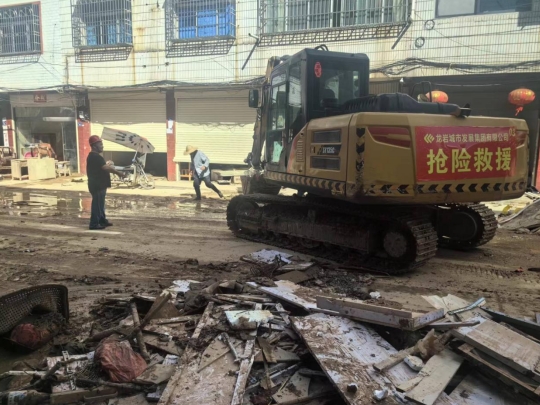 隨后,市政集團搶險救援突擊隊接到了搶修澄邦村村道的任務(wù),短短5公里3米寬的村道,每幾十米就有一個坍塌,大型的拖車無法將挖掘機運送至村里進行搶險救災(zāi)。經(jīng)過突擊隊現(xiàn)場研究,制定了采用小型挖掘機一邊先行搶修道路一邊往澄邦村前行的方案,最后挖掘機用了5小時到達村里開始搶險工作。