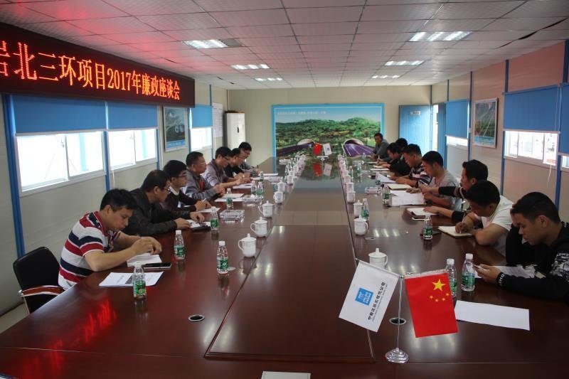 徹落實集團公司黨委關(guān)于黨風(fēng)廉政建設(shè)重要部署,預(yù)防工程腐敗事件發(fā)生,3月28日下午,北三環(huán)承建單位中建七局組織召開項目廉政建設(shè)座談會,城投公司代表、施工單位、監(jiān)理單位負(fù)責(zé)人和各主要材料供應(yīng)商負(fù)責(zé)人參加了會議。