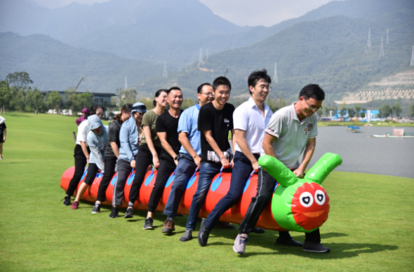 與傳統(tǒng)運動會不同,此次趣味運動會環(huán)節(jié)豐富、趣味十足、合作性強,涵蓋了旋轉(zhuǎn)接水、毛毛蟲、跳一跳三個項目環(huán)節(jié)。所有參賽人員按隨機性破冰重組,分為四隊,每個項目都是以多人合作為比賽模式,不但考驗了參賽者的協(xié)調(diào)能力和身體素質(zhì),更考驗了團隊合作精神。賽場上,隊員們笑容滿臉,精力充沛,全力投入,場上時時爆出掌聲和拼搏的歡呼聲,真正賽出風采,賽出凝聚力。